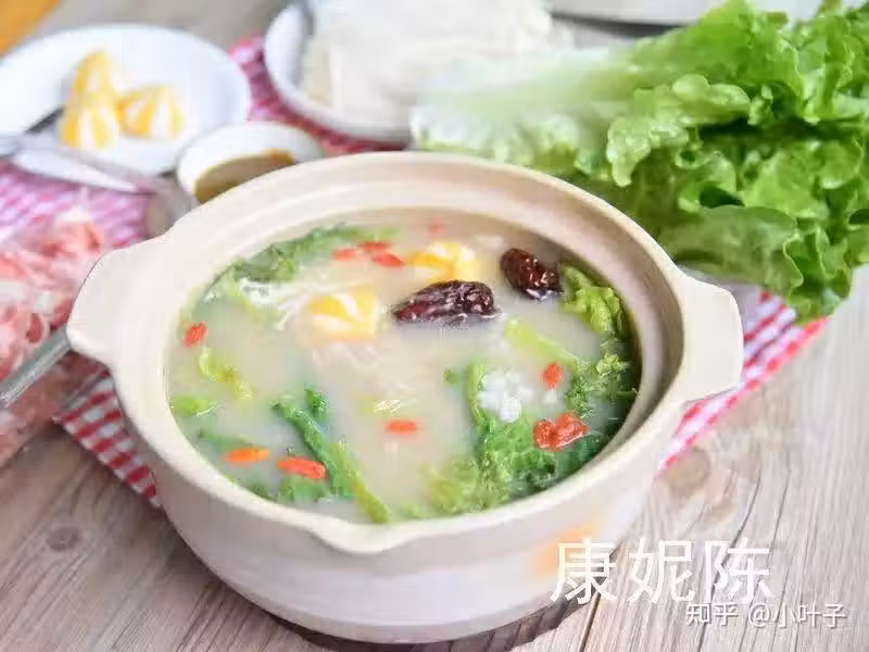 糙米100克、蘿蔔500克姜2片、紅棗4顆當歸2片、枸杞20克金針菇250克、生菜600克素丸200克、食鹽5克