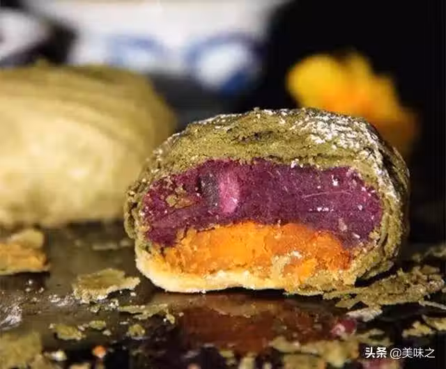 普通粉100g、糖粉10g、黃油40g、水40g、低筋粉80g、抹茶粉8g、黃油40g、紫薯餡120g、煉奶15g、鹹蛋黃6個。