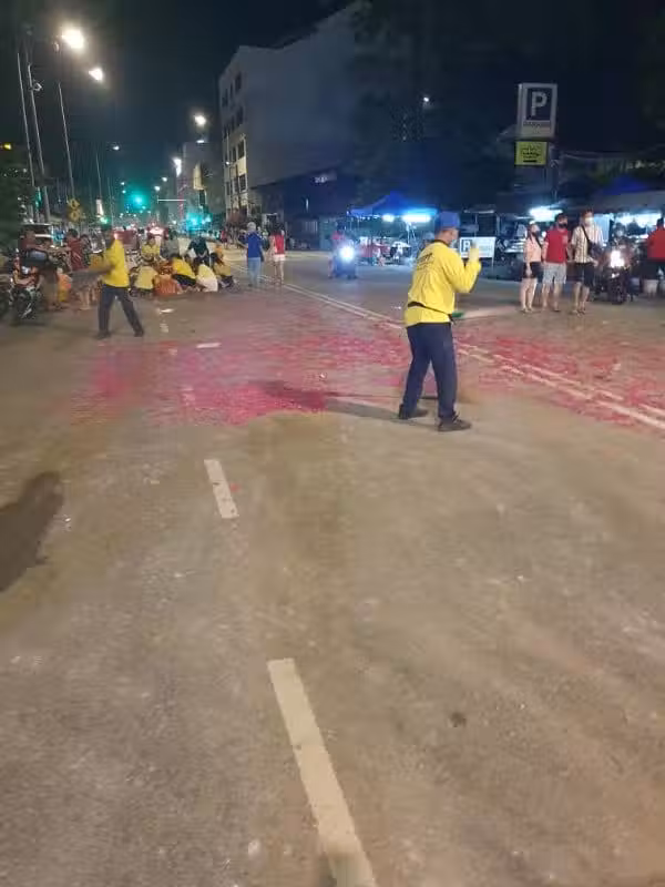 (檳城30日訊)年初八晚華裔盡情拜天公,而檳島市政廳74名清潔員友,則從晚上7時至隔天清晨4時,才將鞭炮屑清理乾淨,同時還收拾了1960公斤的垃圾,包括塑料瓶及塑料袋。