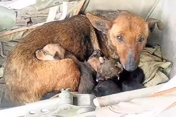 寒冬,流浪狗媽媽和狗寶間,竟「伸出一個小白手」, 仔細一看瞬間淚涌:是個女嬰