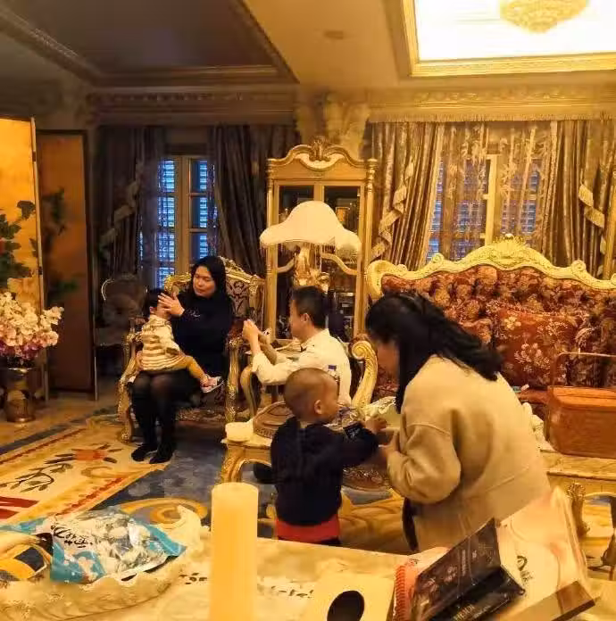 這間豪宅走得是歐式風格,整體色調以暖色調為主,裝修十分奢華,到處擺滿了金燦燦的家具和裝飾物,金碧輝煌似宮殿一般。