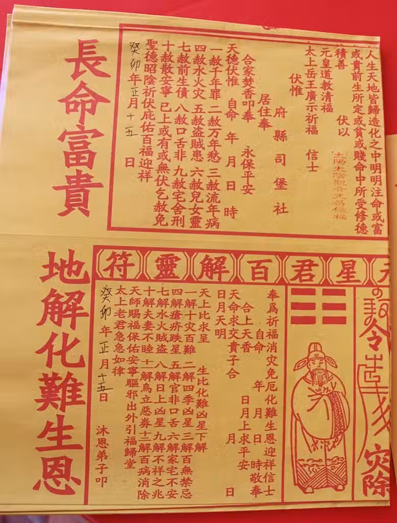 廟祝通常都為信眾填寫化解靈符,化解太歲的影響。