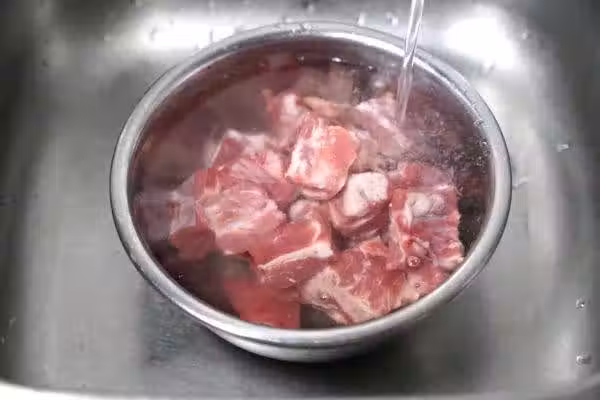 準備食材:排骨2斤、蔥、姜、八角,清水。