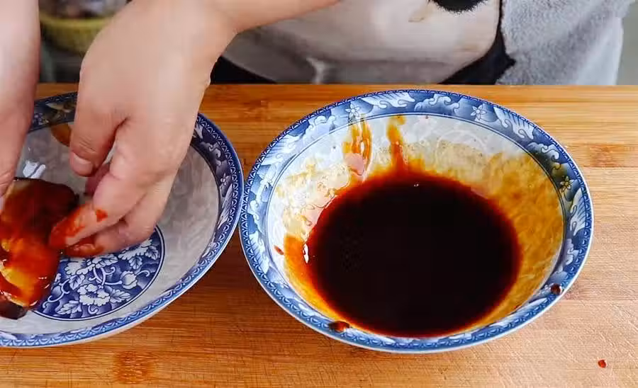 10。準備料汁:兩勺生抽倒入碗中,再加入三勺的味極鮮醬油,一勺醬油,三勺蠔油,一小勺精鹽,一勺白糖,放入少許的白鬍椒粉攪拌均勻。