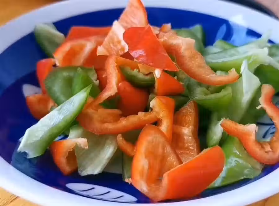 12,準備好青紅椒去點瓤,切成小塊備用