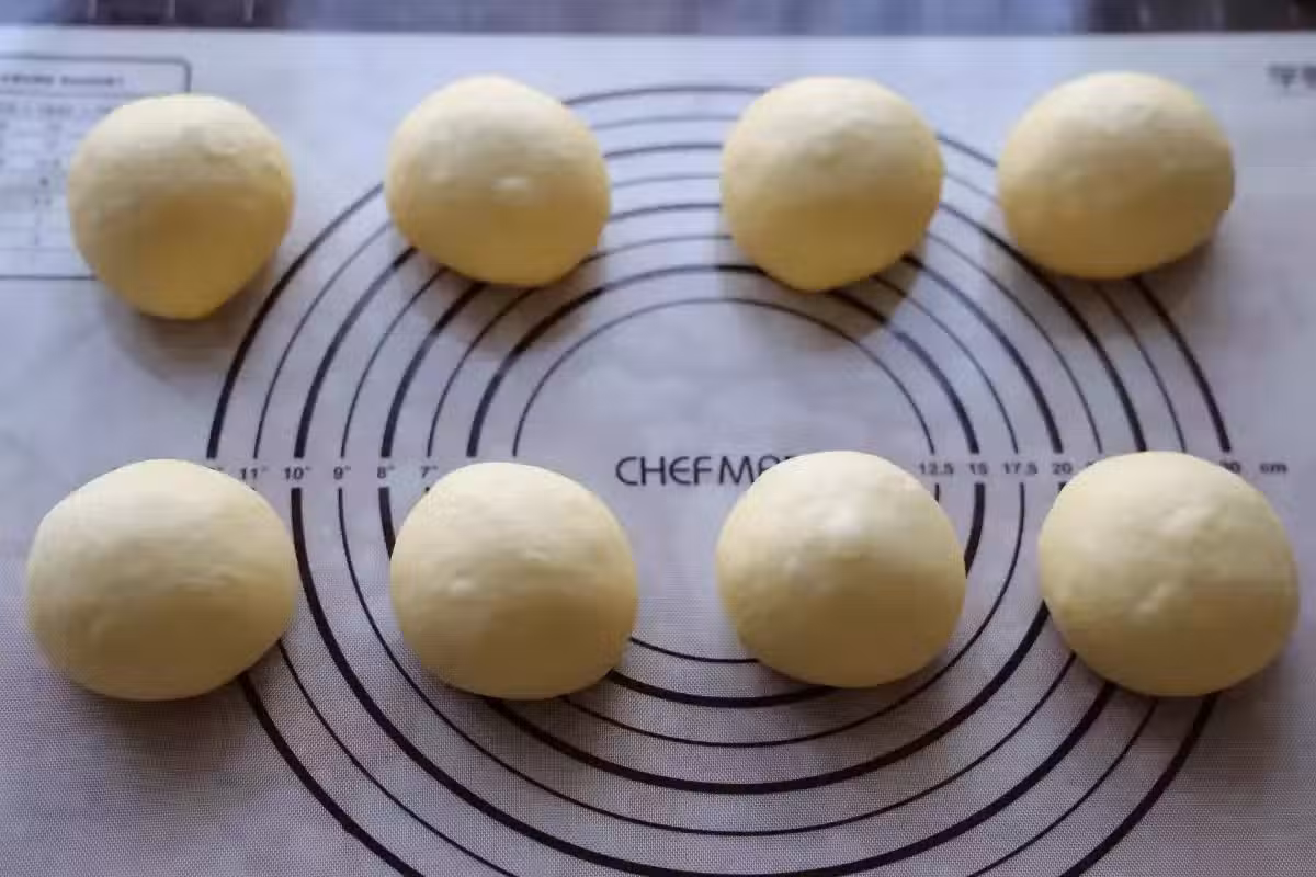 5、醒好的麵糰擀薄,把大氣泡拍掉;