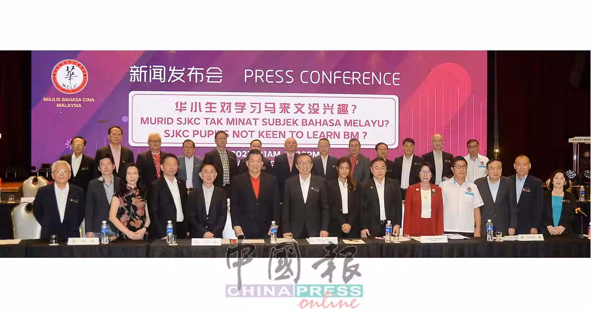 12個華教團體譴責《每日新聞》和《新海峽時報》報導標題為「華小生對學習馬來文沒興趣?」的新聞;前排左起為王發、陳文翰、曾俊萍、蘇耀原、黃孝居、楊安山、王鴻財、烏瑪、林永興、蔡淑禎、葉全發、黃東海、黃世輝,和鄭玉表。
