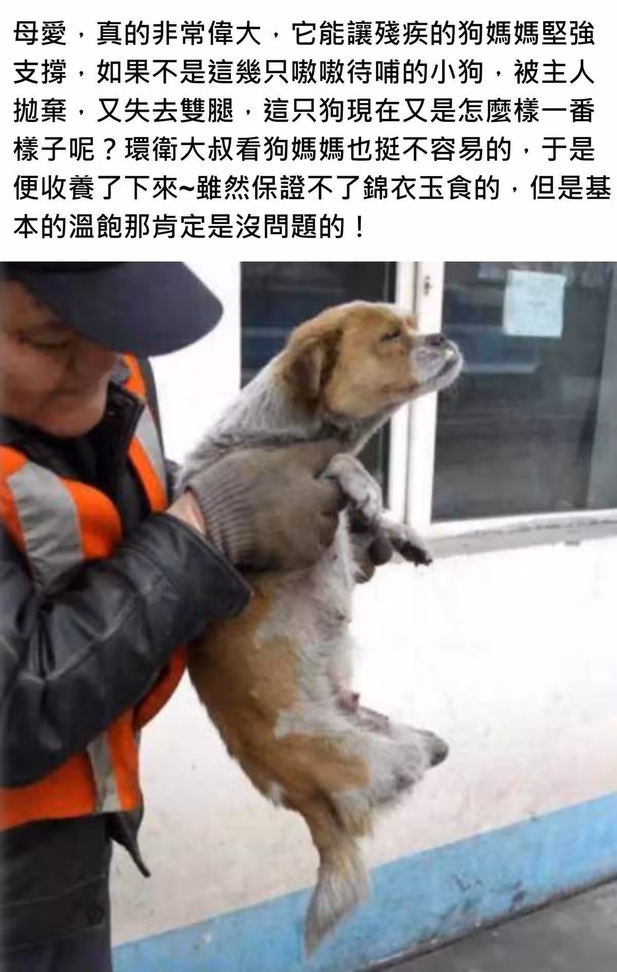 兩條腿的流浪狗到處翻垃圾桶,好心環衛大爺跟過去一看落淚了!母愛不分種族
