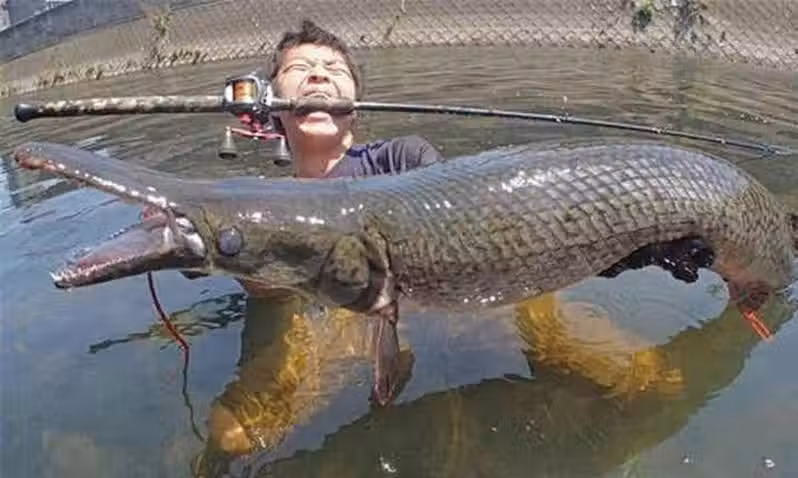 小男孩釣上一條大怪魚,身如蟒蛇嘴似鱷魚,岸上人大喊:快逃