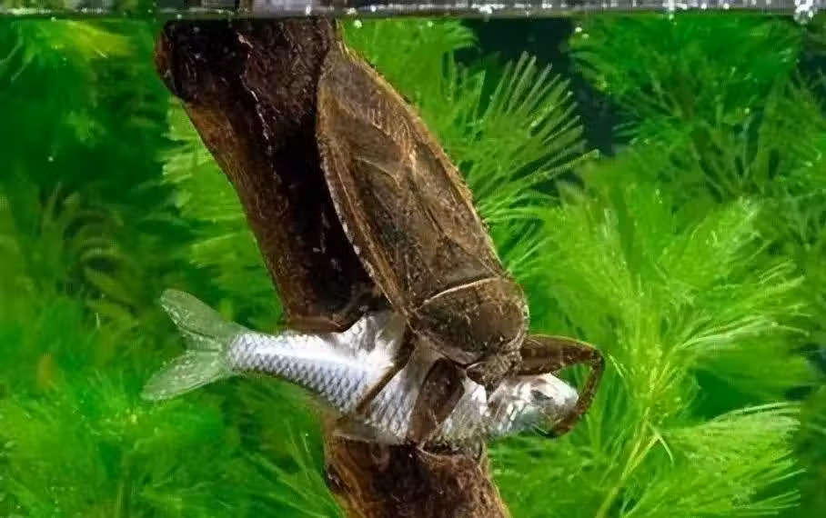 15.巨型水臭蟲正在吃魚。你見過巨型水臭蟲嗎?它真是一種神奇的物種啊!