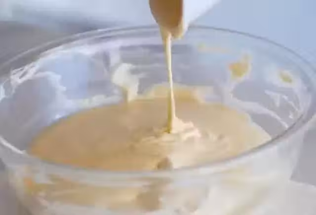 柳丁沫糊糊倒入低筋雞蛋糊糊裡翻拌