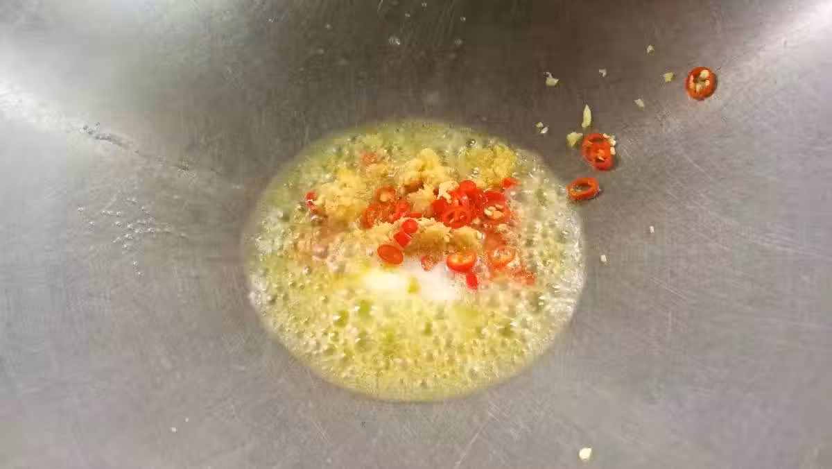 4)倒入調味料,轉小火,煮至濃稠。