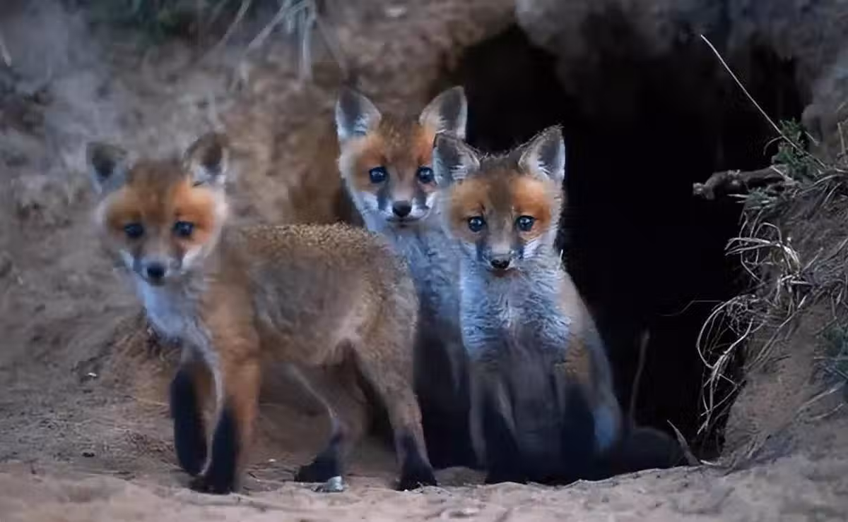 而雕鴞堅持不懈,終在跟蹤多次後,成功找到了狐貍窩,發現這只狐貍也是拖家帶口有妻兒,雕鴞準備採取進一步的行動,待到這只公狐貍外出去覓食,母狐貍帶著3隻狐貍崽在外面游蕩,雕鴞瞬間就把母狐貍解決了,絲毫都沒給母狐貍反抗的機會,沒有了母親的保護,這3隻幼崽子就是「囊中之物」,爪子與喙的完美配合,讓這些狐貍在最後的時間沒有過多的痛苦,待到公狐貍回到洞穴附近時,似乎察覺到了什麼,就在它準備跑時,雕鴞俯沖到它身上,沒幾下就把公狐貍幹掉了,這次雕鴞滅了狐貍全家,大仇得報。