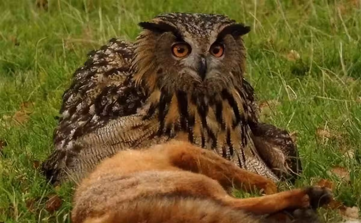新疆天山雕鴞「為報仇」,跟蹤狐貍,找到巢穴,「滅了狐貍一家5口」