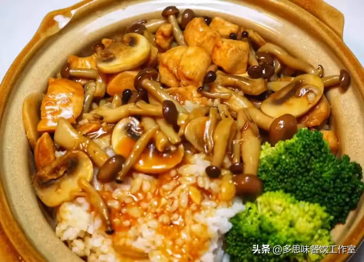 主料:雞肉丁150g,菌菇