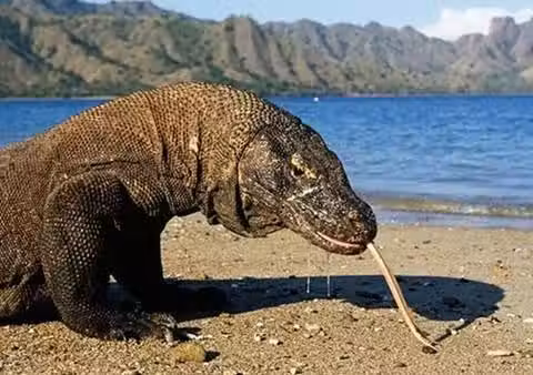 這幾乎與開罐頭的動作一樣,牙齒呈左傾倒的「八」字弧形前後運動,並向縱深切割——真正的力量來自於它強有力的前臂和肩膀配合槓桿原理,讓牙齒嵌入獵物體內,對其造成重傷。就像人利用上半身的軀體轉動,帶動頭部和牙齒左右轉動,而非僅僅使用脖子轉動頜部。科莫多龍用這種特殊的「撕咬法」來狩獵和進食。這樣鋸子般的牙齒和巧妙的槓桿原理配合運用,使得科莫多龍成為伏擊型的獵手,並掌握動物界最致命的撕咬方式之一。