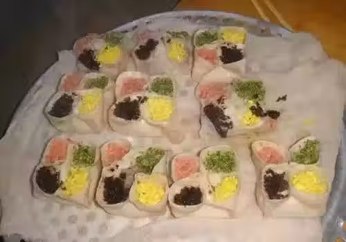 工藝流程:溫水和面---拉劑---上餡---成型---成熟。