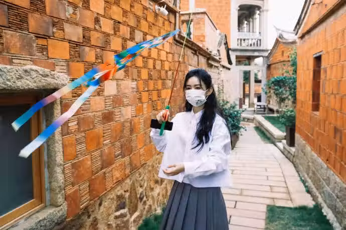 趙麗穎漫步古城閒適自在 放飛風箏靈動可愛好少女