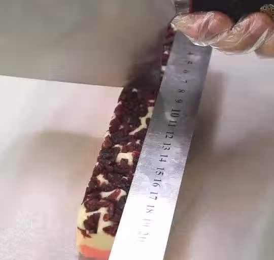 先平均切成4條,然後再按4厘米或者5厘米間隔標記一下。