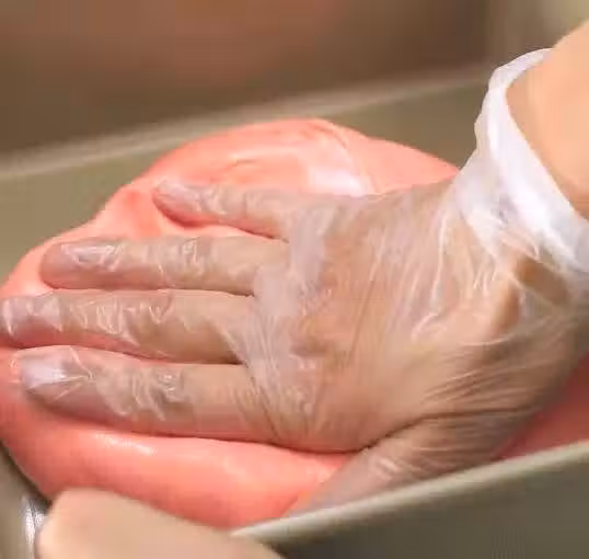 把棉花糖倒入20厘米的正方形模具里,千萬別忘了底部墊油紙,否則脫模時會懷疑人生,我這裡就算是一個反面教材了。