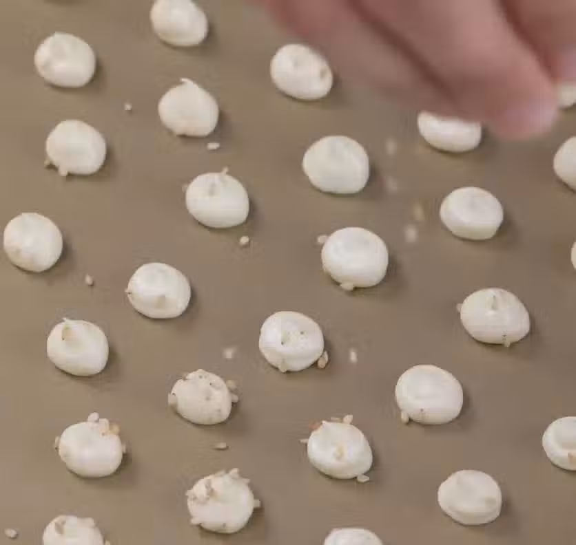 擠好後,均勻撒上白芝麻,也可以是海苔碎。