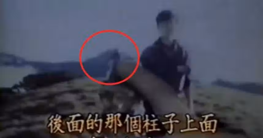 原來照片中,原本只有他一個人入鏡的畫面後方,竟然冒出一個非常清晰的人影,就站在「南華山基點」上面,然而詭異的是,