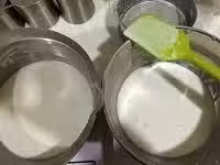 4、然後在600ml的麵糊裡,倒入半茶勺的班蘭葉香精,攪拌均勻備用。