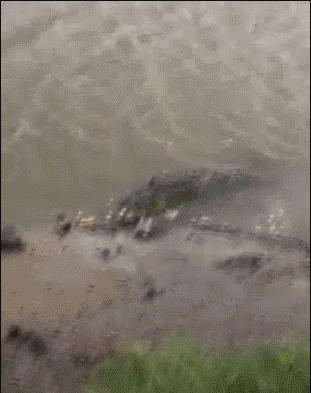 鱷魚咬住了一條魚——沒錯,並非所有種類的鱷魚都以牛羚斑馬為食,畢竟是住在水裡的,吃點魚不好嗎?