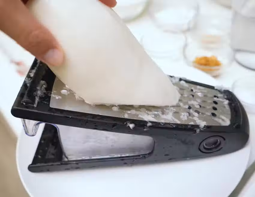 ▼刨成細細的蘿蔔絲~~刨完會發現底下還有不少水份,請留著一起做成蘿蔔糕!