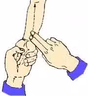 3)左手握住孩子的任何一隻手,讓他的手心向上,您用右手大拇指的螺紋面從孩子的無名指第二指間關節橫紋推向指尖。也推49或81下。