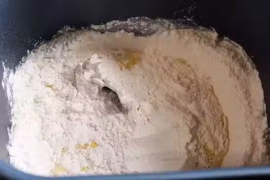 3、將無鹽黃油放入桶內繼續揉至麵糰表面光滑,用手可以拉出很薄的膜