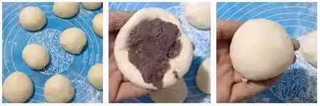 8、然後將麵糰斜著捲起;