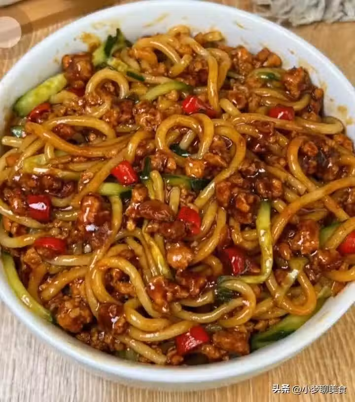 ★食材:麵條、豬肉末、蔥蒜、小米辣那黃瓜、生抽、老抽、蚝油、甜麵醬、豆瓣醬、白糖、澱粉。
