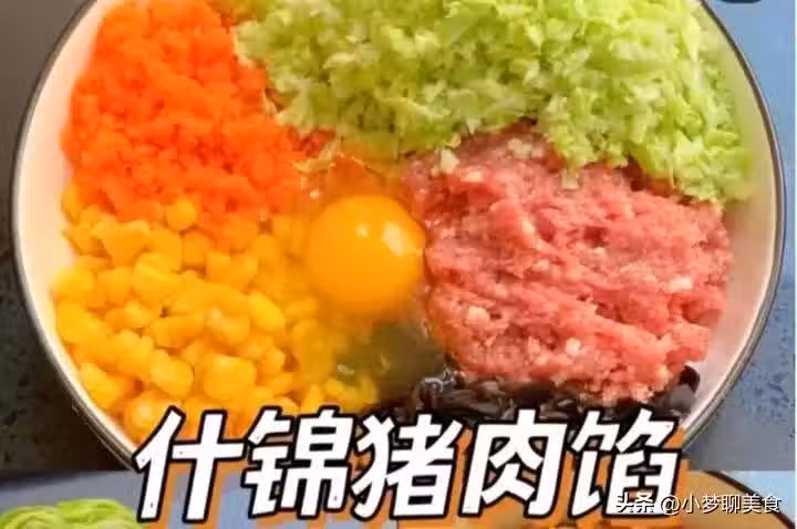 食材:包菜、豬肉沫、胡蘿蔔、木耳、玉米粒、雞蛋。