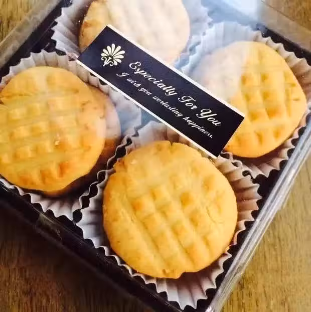 材料:低粉 90g、奶酪粉 10g、奶粉 20g、雞蛋 30g、黃油 70g、糖 20g、鹽 1/4小勺