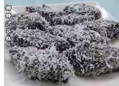 5.把涼卻的沙谷糕切片,然後沾上椰絲,即可。