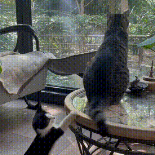但與此同時,狸花貓也會把自己的尾巴奉獻出來,給小貓當成玩具玩,無論玩多久,它都不會生氣。