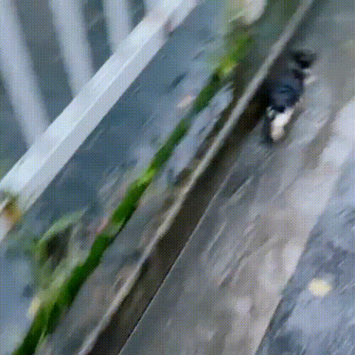 殊不知,小貓的亂跑行為,卻意外降低了捕捉難度,它沿著馬路牙子,一路跑到了排水網附近。大概它以為藏到裡面,人類就逮不住自己了。