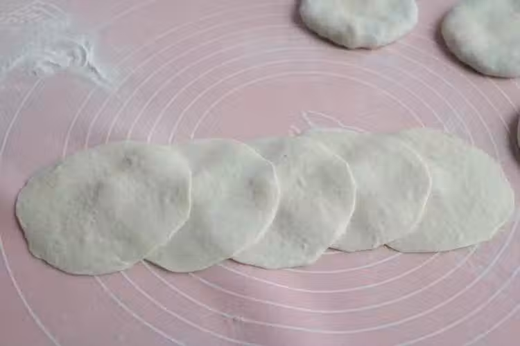 6、取一個面片,包入適量內餡兒,像包包子一樣封好口;最後再搟薄;