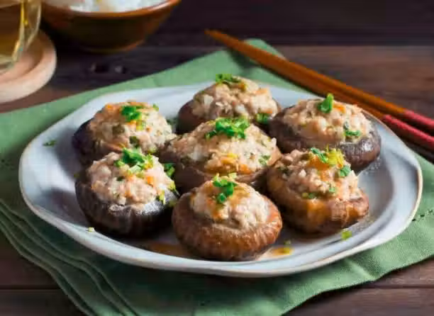 4.將豬肉餡釀入香菇里。