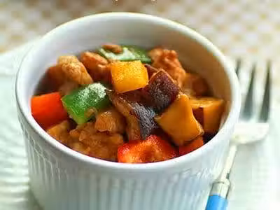 雞脯肉、新鮮香菇、青紅椒(也可用黃瓜、胡蘿蔔色彩鮮艷的菜代替);生抽、料酒、糖、鹽、醋、蔥、姜;