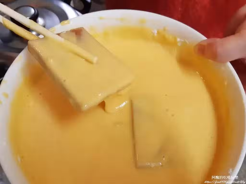 5、熱油鍋,油的溫度到底夠了沒?只要滴上一滴麵糊,會浮在油麵上,不會沉下去就是夠熱了。