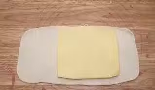 7.左右對折,將黃油完全覆蓋住,捏嚴封口,上下兩邊也捏嚴。