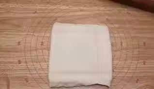 8.將面片輕輕擀壓幾下,使面片和黃油緊緊貼合;用保鮮袋包裹嚴實,入冰箱冷藏鬆弛15分鐘左右。