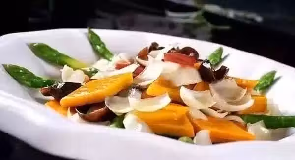 原料:蘆筍、南瓜、彩椒、油、鹽、百合