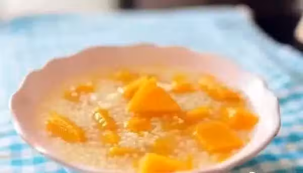 3、煮小米時,將南瓜切小塊,或者用攪拌機將南瓜打成泥。