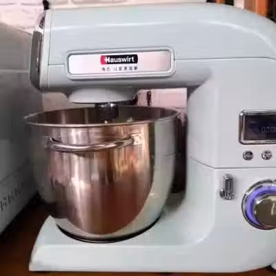 2、蛋白倒進廚師機攪拌缸裡,加入1克鹽,檸檬汁幾滴,糖一次性倒進去