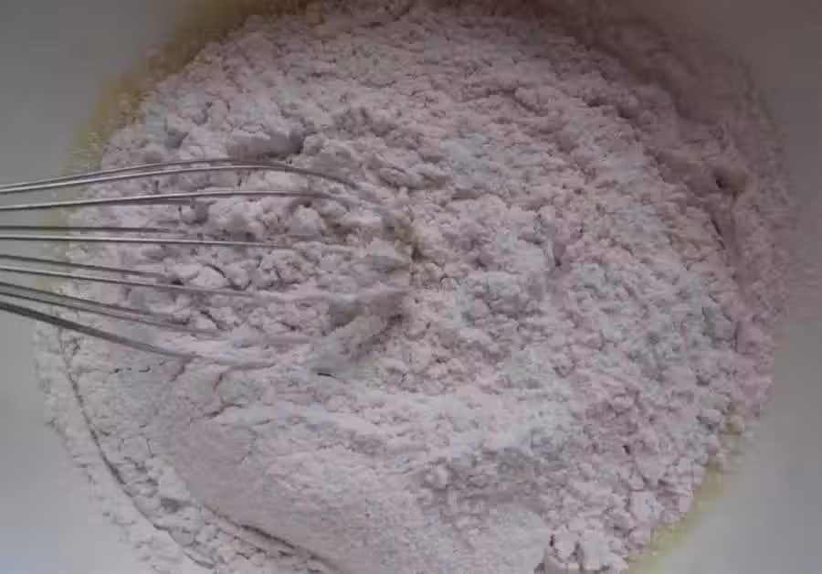 第二步:把蛋黃中加入玉米油,牛奶用蛋抽充分打勻,篩入低筋麵粉。低筋麵粉要篩入到蛋黃糊中,這樣不容易形成小麵疙瘩,比較好攪拌。