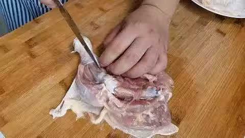 1.準備適量大雞腿,貼著雞骨頭把雞肉劃開,這樣雞肉更容易入味,雞肉可以選擇去骨也可以不去骨,去骨更方便食用,不去骨成型更好看。