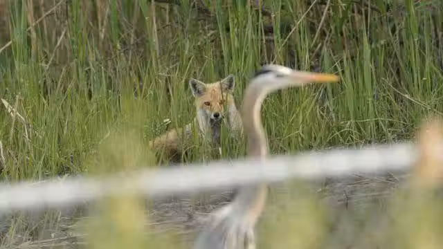 大衛斯還注意到,在這個彆扭的「組合體」身後不遠處,有兩隻年輕的老鷹以及一隻狐狸正在悄悄跟蹤。它們大概都認為蒼鷺可能活不了太久了,甚至立馬都有墜落在地面上的可能,所以提前準備佔有美食。